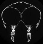 Although the adaptations of different genera are reflected in their craniodental anatomy, platyrrhines in general retain a cranial morphology more similar to primitive anthropoids from the Eocene and Oligocene of Egypt such as Catopithecus, Parapithecus, and Aegyptopithecus than do the living Old World anthropoids (Fleagle, 1999; Simons, 2001).  The research for which these CT data were collected indicates that this primitive anthropoid cranial morphology included considerable cranial pneumatization via the paranasal sinuses.  |