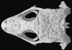 Three-dimensional volumetric renderings of the skull with the osteoderms, scleral ossicles, hyoid and jaw removed, and of the isolated left mandible. All are 2mb or less.