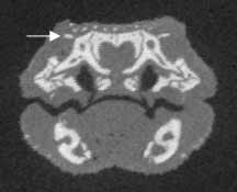 Coronal slice through orbits showing position of palpebral deep to osteoderms. |