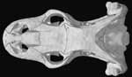 This scan revealed two features previously unknown in Lanthanotus. The first is the full extent of osteoderms (bones embedded in the skin) around the skull. In McDowell and Bogert's (1954) landmark study, an X-radiograph of Lanthanotus revealed only the most robust osteoderms on the dorsal aspect of the head. But as shown in the "skeleton only" animations above, Lanthanotus possesses a much more extensive array of osteoderms than could be detected by conventional X-radiography.