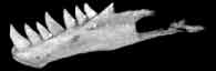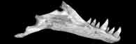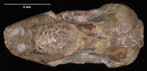 Rhineuridae includes a number of fossil forms (all restricted to western North America) but only one living species Rhineura floridana which occurs in central Florida and Georgia. The specimen featured here is referable to Rhineura hatcherii, known from the Middle to Upper Oligocene of South Dakota, Nebraska, and Colorado. Rhineura hatcherii is very similar to R. floridana, but differs in part in having up to seven maxillary and dentary teeth and a sagittal crest. |
